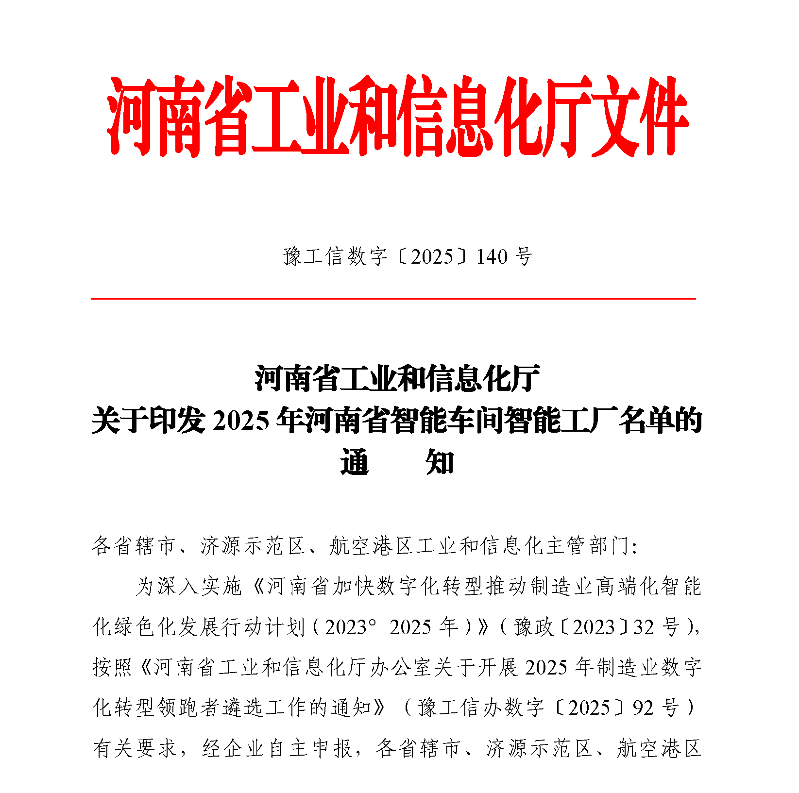 為深入實施《河南省加快數字化轉型推動製造業高端化智能化綠色化發展行動計劃(2023-2025年)》(豫〔2023〕32號),按照《河南省工業和信息化廳辦公室關於開展2025年製造業數字化轉型領跑者遴選工作的通知》(豫工信辦數字〔2025〕92號)有關要求,經企業自主申報,各省轄市、濟源示範區、航空港區工業和信息化主管部門初審推薦,省工業和信息化廳組織專家評審、網上公示等程序,確定河南樱桃软件污電纜股份有限公司為2025年省級智能工廠。