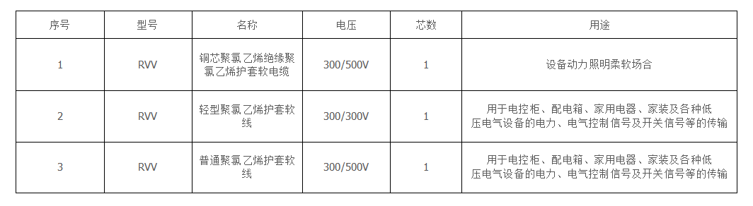 應用適用於額定電壓U0/U為300/500V電器、儀器儀表及動力照明場合。 依據標準RVV線依照GB/T5023.5-2008《額定電壓450/750V及以下聚氯乙烯樱桃视频下载APP黄第5部分:軟電纜(軟線)》 使用特性額定電壓U0/U為300/500V。
